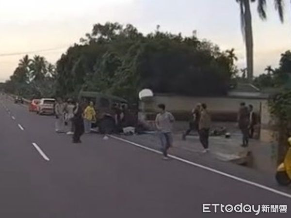 ▲陸軍八軍團一輛輕型戰術輪車旗山自撞,釀3官兵送醫。(圖/記者許宥孺翻攝)