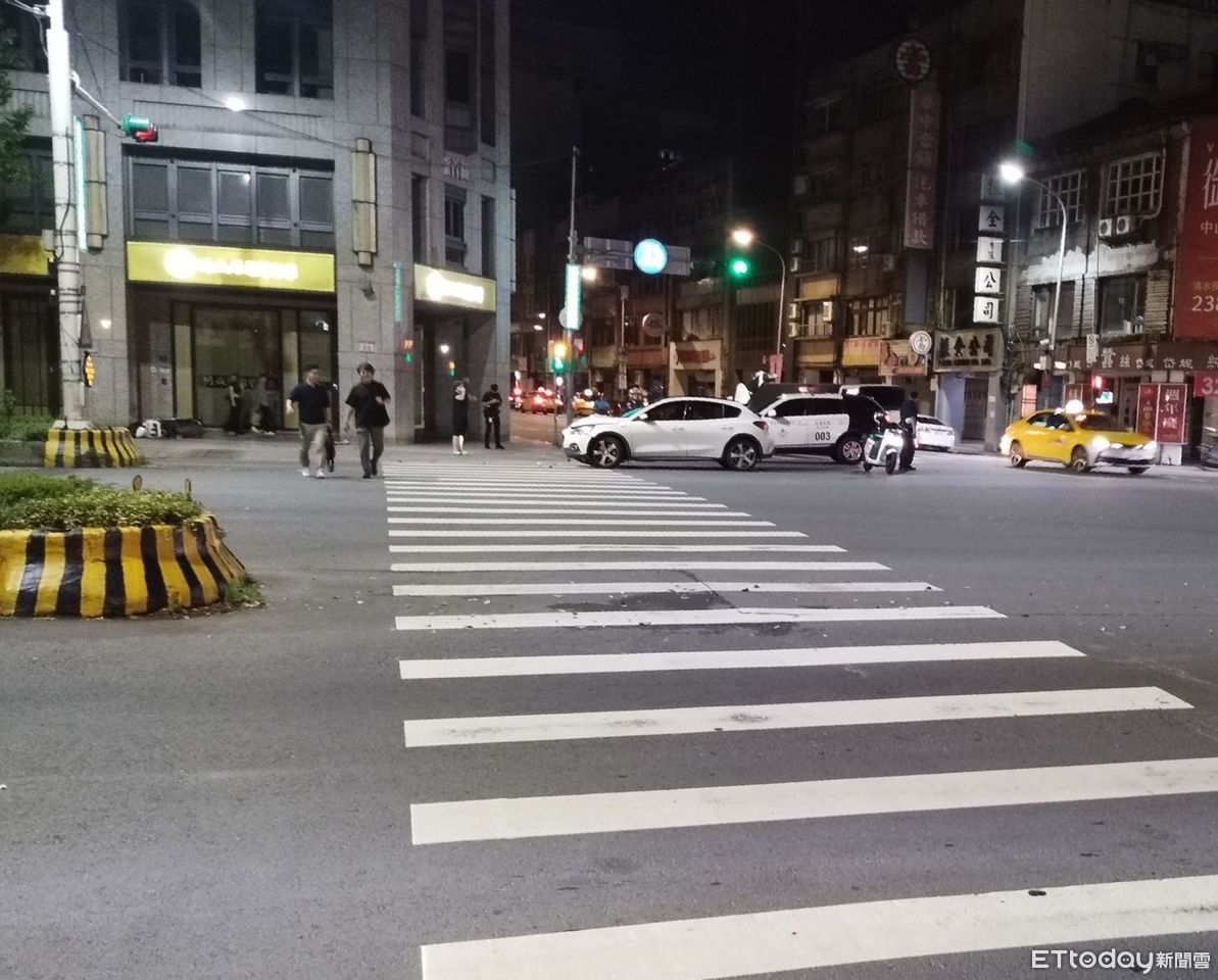 ▲中山分局員警執勤在路口遭小客車撞飛。(圖/記者邱中岳翻攝)