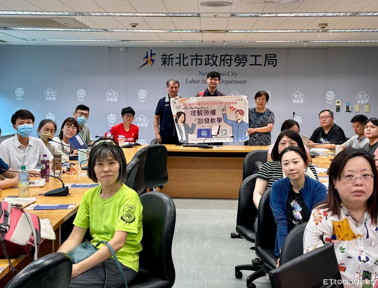 ▲新北市勞工局長陳瑞嘉、講師黃秋桂與首日受訓教師們大合影。(圖/新北市勞工局提供)