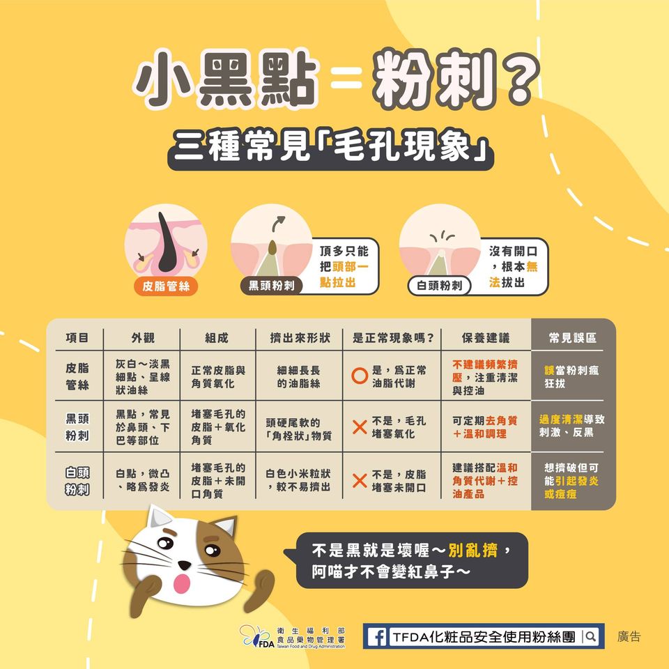 ▼TFDA介紹3種常見的「毛孔現象」。(圖/翻攝TFDA 化粧品安全使用臉書)
