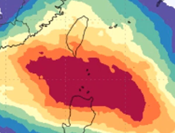 賈新興提醒,需特別觀察周三起,菲律賓東方外海熱帶系統發展及移動的趨勢。他引用最新歐洲系集模式預測未來10天颱風侵襲機率圖指出,特別是周五、周六是颱風的機率很高,且從巴士海峽通過機率較高。
