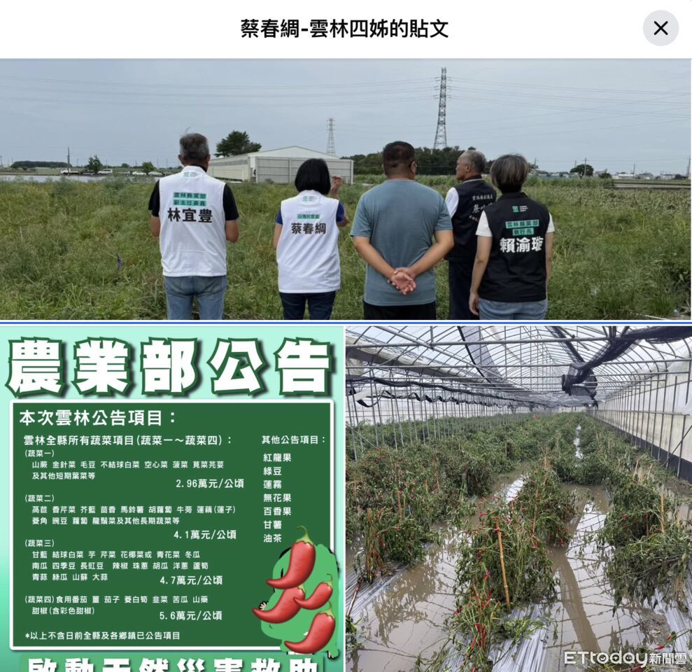 丹娜絲颱風在中南部地區造成嚴重災情,名列民眾黨不分區立委第11席的蔡春綢,14日夜間在臉書貼文,稱經過呼籲後,辣椒終於被納入補助;她更說,災後補救要有效,「颱風無情,政策要有情」。但貼文中的一張圖片卻被網友抓包,疑似盜用民進黨立委劉建國的圖片,甚至還用辣椒遮蓋劉建國的Q版人物,被網友酸爆「盜圖」、「民眾黨就是愛抄襲」。