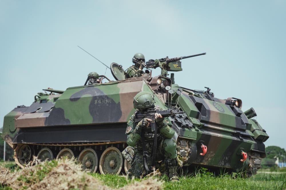 演練中,部隊針對敵軍由灘岸推進狀況展開應處行動,CM21甲車機動部署,搶占地形要點、建立陣地位置,以火力遲滯敵軍推進,爭取主力部隊調整時間與部署空間。