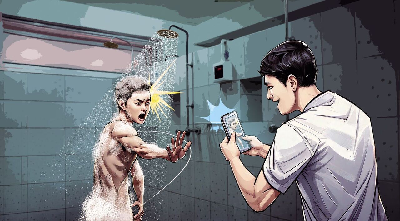 ▲某高中橄欖球隊一名學生在校洗澡時,被同學用手機偷拍,並上傳球隊群組。(圖/鏡週刊提供,下同)