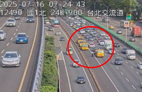 上班注意!高公局表示,今天7時12分,國道1號北向25K、台北交流道路段,發生4輛自小客車追撞占用外線事故,請用路人小心駕駛。目前該路段時速「紫爆」,僅剩15公里。