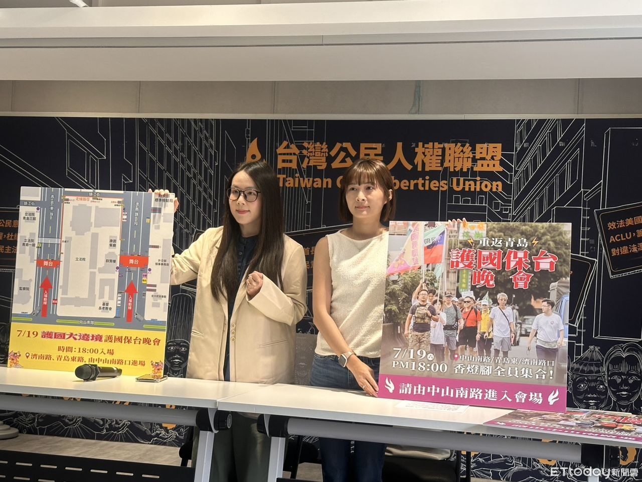主辦單位今召開記者會,宣布7月19日舉辦「護國大遶境-護國保台晚會」,為了重現去年青鳥行動的盛況,這次晚會將採雙舞台形式,預計在濟南路與青島東路各架設舞台,希望號召所有參與這次護國大遶境的「保台香燈腳」,以及過去參與青鳥行動的「追星人」帶著大家的手燈,一同來參與這場晚會。