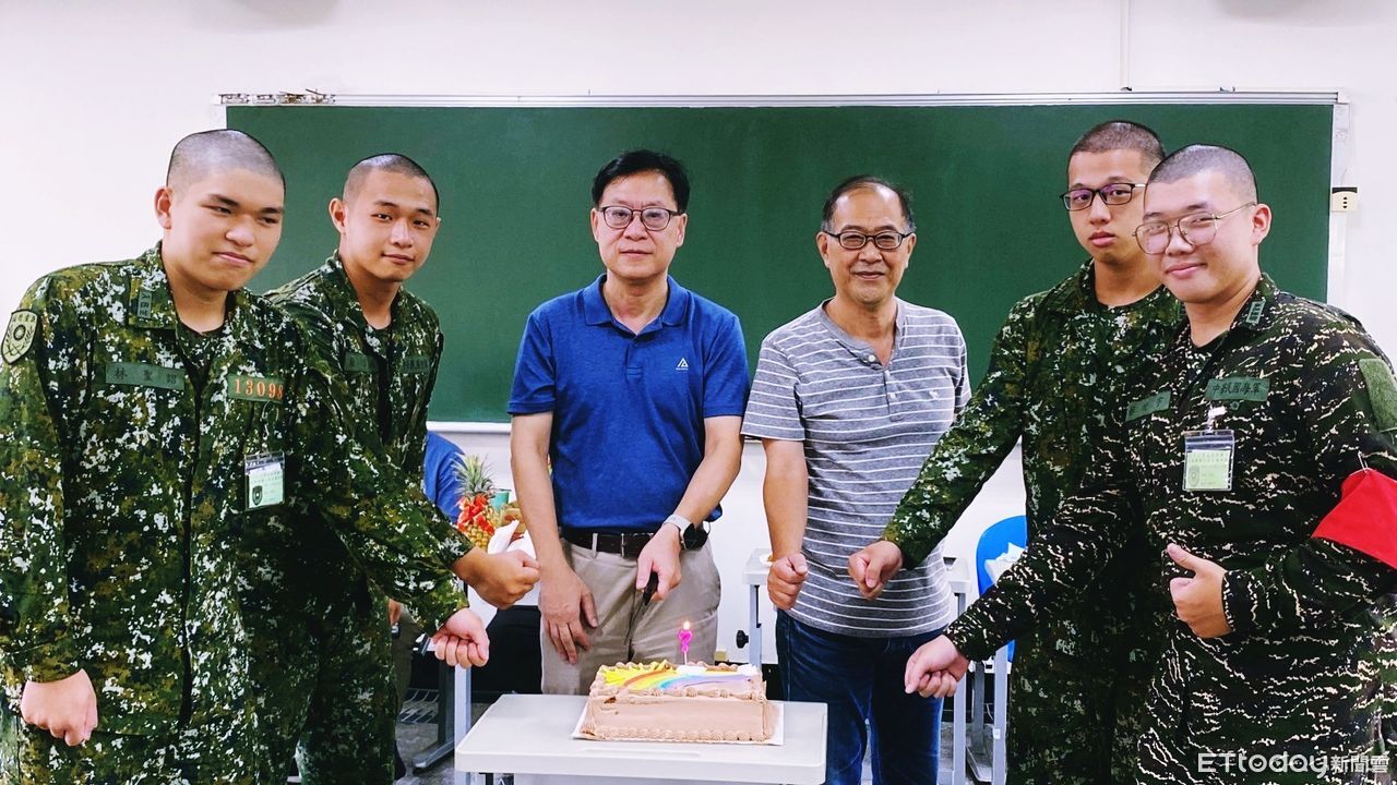 美和科技大學慰問團隊師長們特地準備餅乾、巧克力、炸雞、薯條與飲料等點心,公務無法前行的校長更交代ROTC教育中心特製蛋糕,為7、8月的壽星學生慶生,讓大家在緊湊的訓練生活中感受到家的溫暖,並送上每人一顆意涵「平安」諧音的「蘋果」,代表對入伍生最真摯的祝福—平安順利完成訓練,現場氣氛溫馨感人。此外ROTC教育中心主任黃其彥特別帶來象徵祝福的「花蓮大西瓜」與「金鑽鳳梨」,寓意「苦盡甘來、旺旺來」,希望學生順利完成訓練、無障礙前行。