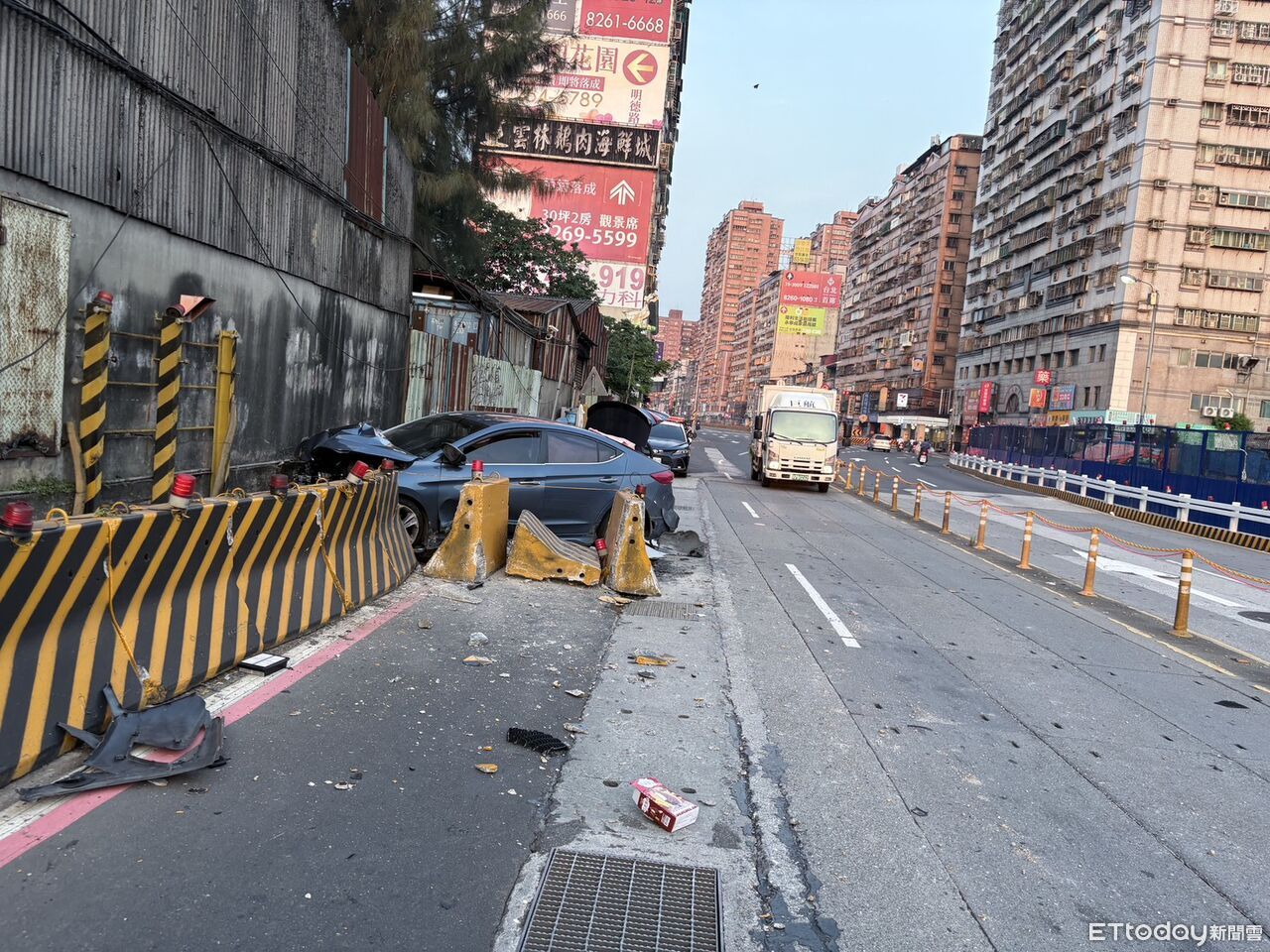 ▲郭女開車自撞水泥護欄,失去意識送醫搶救中 。(圖/記者陳以昇翻攝,下同)