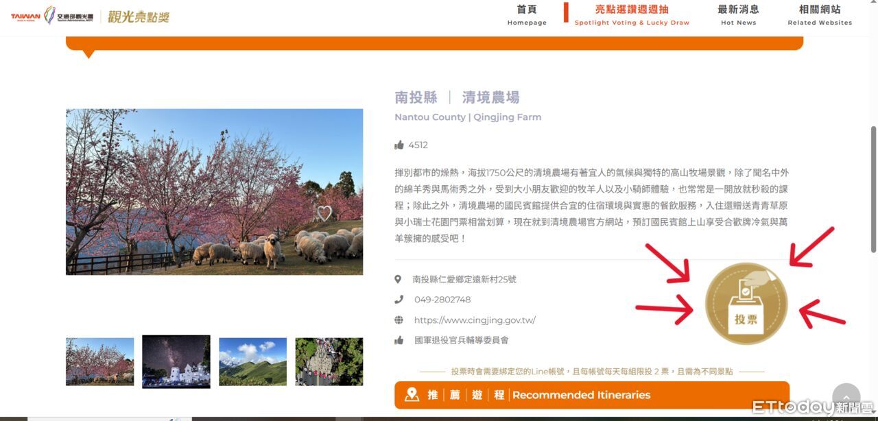 農場強調,本次票選活動是交通部觀光署官方舉辦的年度觀光盛事,若最近在LINE接獲轉傳投票連結(https://spotlightaward.taiwan.net.tw/tourpage.php?tag=2&id=160df9fc-9987-4bd7-b9b8-49ffe9d527ff),不必懷疑是詐騙,只要認明清境農場的官方粉專就不必擔心。