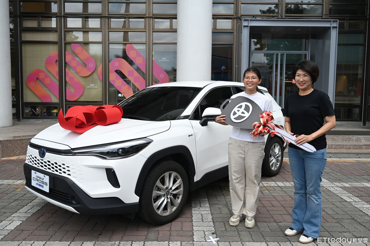 ▲台東市的李小姐(左)幸運抽中TOYOTA COROLLA CROSS豪華油電車。(圖/記者楊晨東翻攝)