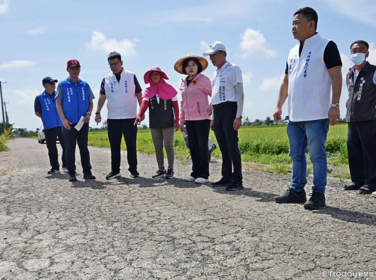 縣長張麗善與雲林縣議員黃文祥、水林鄉代理鄉長張東凱、水林鄉代表李素勵、蔡坤港、陳嘉軒,立委張嘉郡、丁學忠服務處副主任李茂欽與多位村長等前往尖山農地重劃區、後寮村、水北村會勘農水路與道路,聽取地政處、交通局簡報工程計畫。