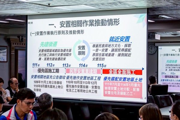 至於安置住宅部分,地政局蔡局長說明,目前共1,411戶已於今年3月至7月間陸續取得使用執照,並同步進行驗屋、繳款與所有權移轉等作業。市府也將持續督導承包商在確保安全及品質的前提下,加快施工進度,確保住戶如期入住;另在工廠安置部分,前五階段65家廠商已於3月開始陸續完成用地點交,預定年底啟動建廠;第六階段的18家廠商則預計年底前完成土地交付。