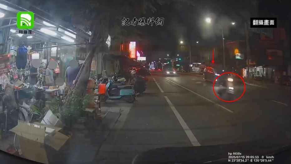 ▲紅圈處為槍手騎士,箭頭處為鳳梨的車輛。(圖/翻攝自記者爆料網)
