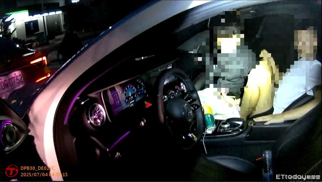 員警見狀立即上前喝止,一打開車門,赫見蔡男整個人「坐」在副駕駛座乘客身上,形成「男男交疊」的詭異畫面,立即要求兩人受檢。