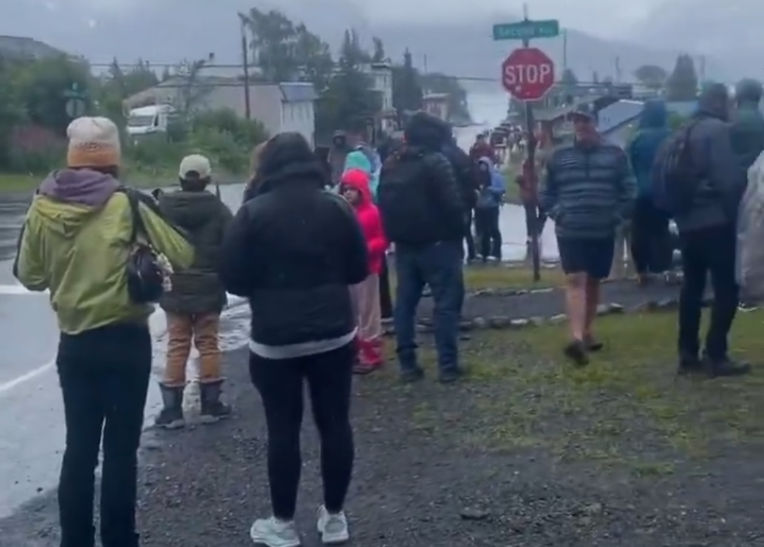 ▲▼阿拉斯加當地民眾撤至地勢較高的地方。(圖/翻攝自X)