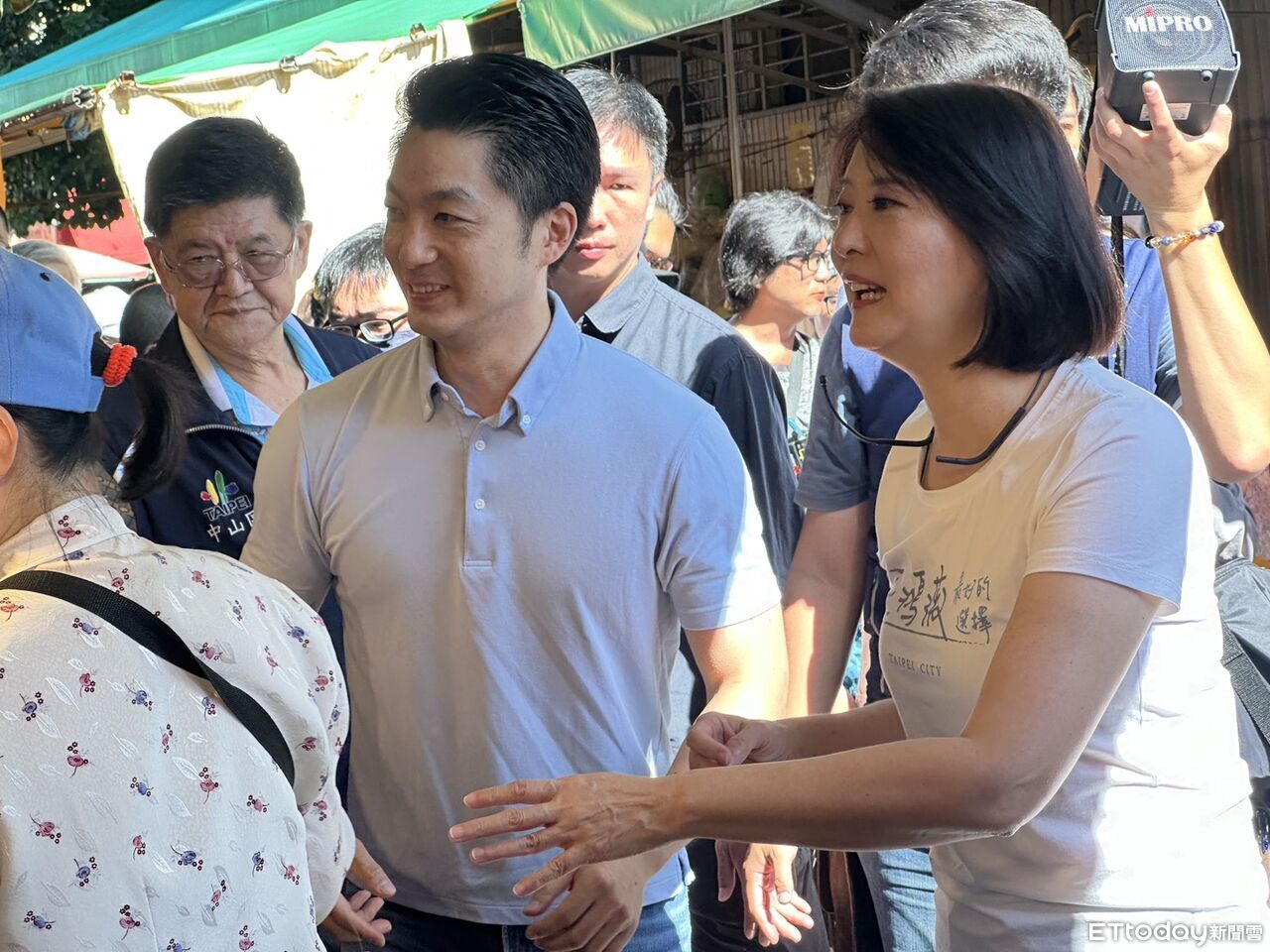 ▲蔣萬安頻頻陪同王鴻薇掃街,宣傳726投下不同意罷免票 。(圖/記者崔至雲攝)