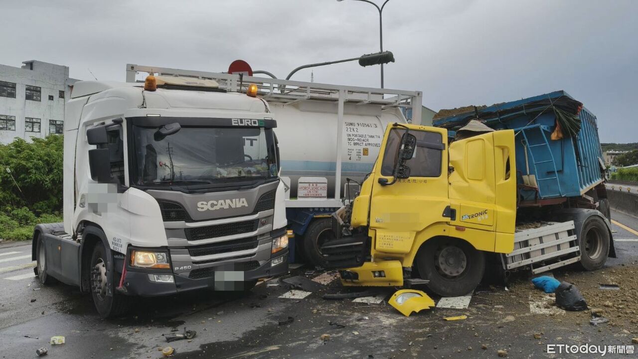 警消趕抵現場,先將受有右手臂撕裂傷,意識清楚的45歲黃姓砂石車駕駛送醫救治;另現場化學槽車後方槽體受損,槽內氫氟酸發生外洩,立即通知毒災應變小組與環保局到場協助處理。