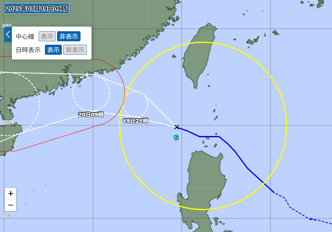 根據日本氣象廳觀測,薇帕19日上午9時位於南海(北緯19.9度,東經119.7度),以時速20公里的速度往西北西方移動。目前中心氣壓為985百帕,近中心最大風速每秒23公尺,瞬間最大陣風每秒35公尺。而風速15 m/s以上的強風域則涵蓋東側650公里、西側330公里。