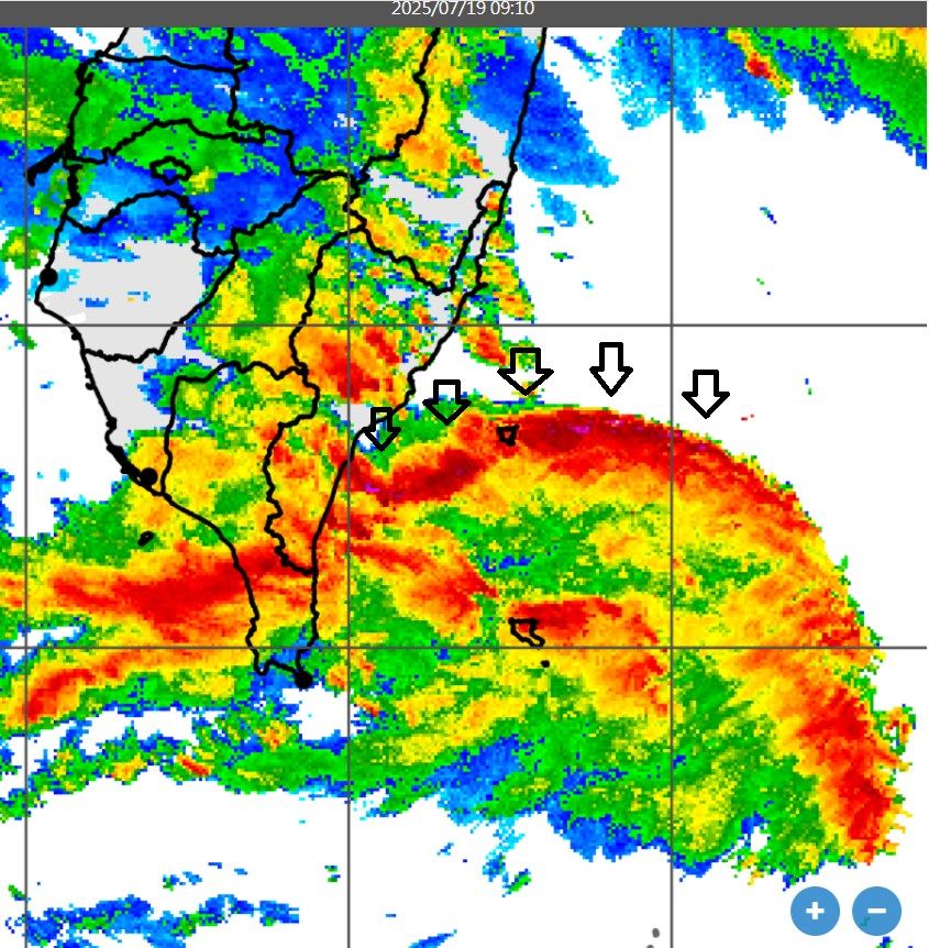 今天颱風離台灣最近,預計下半天將離開台灣近海。受到颱風外圍環流影響,花蓮山區和台東山區降雨將達大豪雨等級,花東、宜蘭、高屏、恆春半島等也有豪雨。另外,雙北、宜蘭、高屏、桃園、台中山區也會有局部大雨。