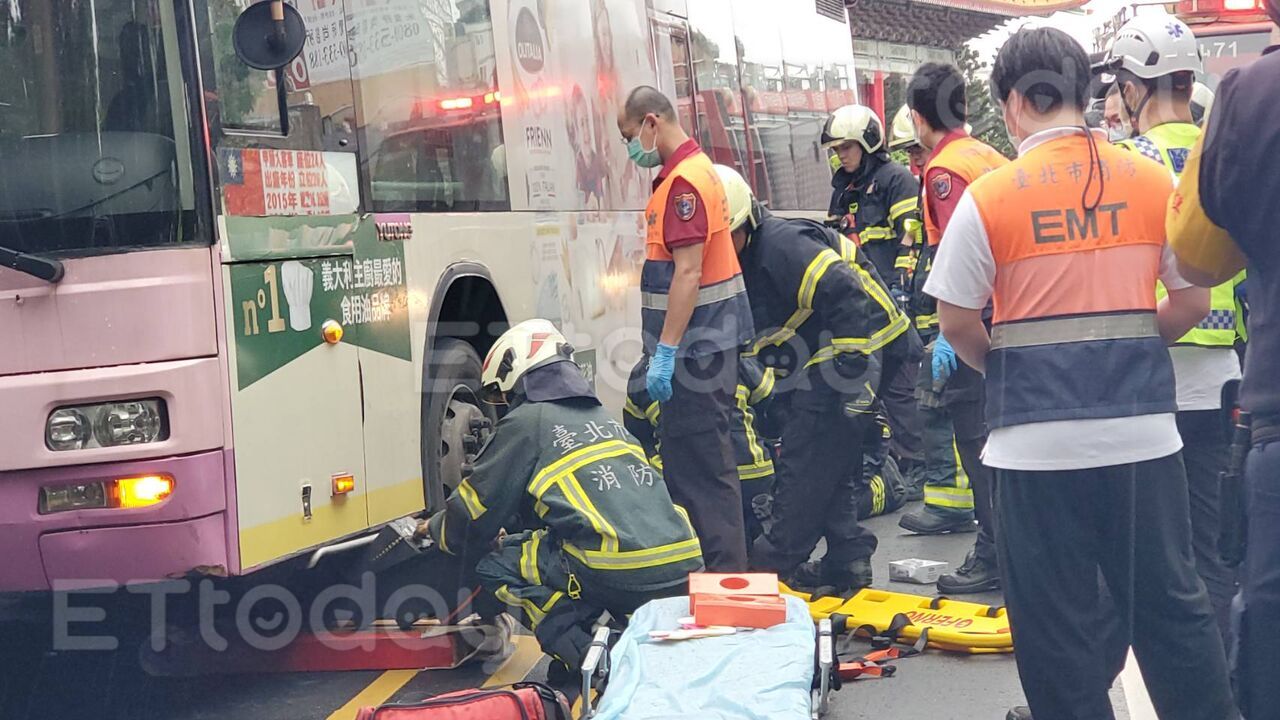 初步了解,該名傷者為60歲周姓男醫師,從桃園北上台北開會,沒想到卻發生意外,在經過斑馬線時和左轉公車碰撞,受困於公車左前輪,經消防人員到場後利用破壞器材將車體撐起救出,已經沒有呼吸心跳,後續送往台大醫院搶救後不治身亡;公車上無乘客受傷。