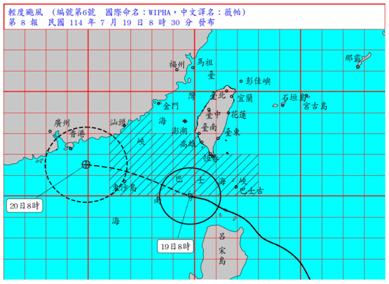 氣象署技正謝佩芸表示,薇帕颱風目前仍是輕度颱風,暴風圈正在通過南方海面,朝西北西偏西移動,今天下半天之後就會逐漸往西離開台灣,有越來越遠趨勢,明天上半天抵達香港南方海面,前往港澳地區要留意。