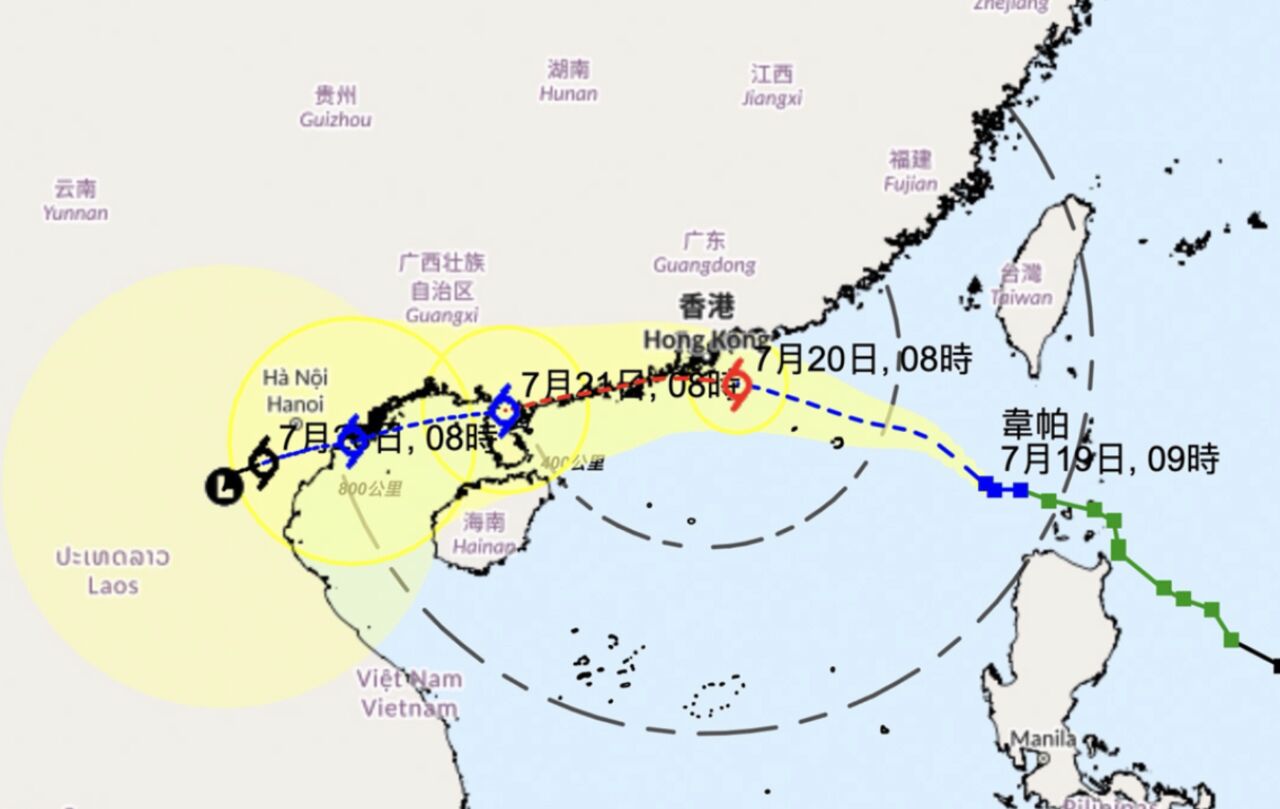 香港天文台提到,依照預測,薇帕20日將接近珠江口一帶,香港會有頻密狂風大驟雨及雷暴,會視薇帕與珠江口的距離、強度及本地風力變化,評估是否需要在20日改發八號烈風或暴風信號(八號風球)。