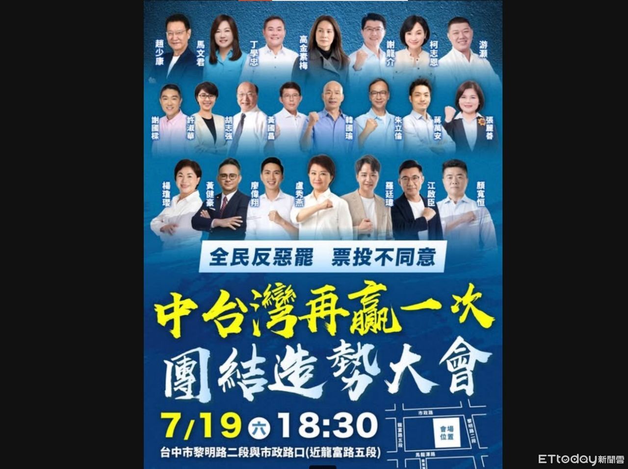 ▲國民黨晚間將在七期舉辦「中台灣再贏一次」造勢大會,邀請總統大選等級卡司助講。(圖/翻攝立委楊瓊瓔臉書)