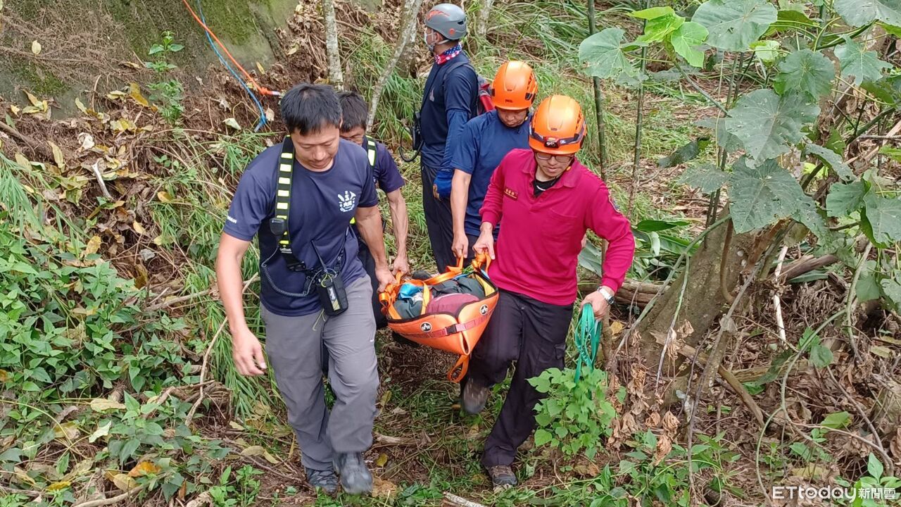 ▲消防人員於白河碧雲寺山區實施垂降訓練,模擬將受傷民眾從崖下安全吊掛救出。(記者林東良翻攝,下同)
