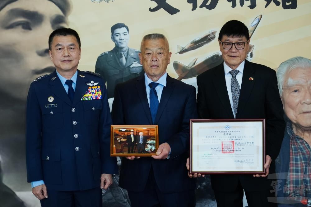 文物捐贈典禮下午在忠勇營區舉行,朱安琪遺族捐贈其生前珍藏之照片、筆記、徽章與文獻資料等,內容豐富,意義深遠。空軍司令部代表接受捐贈,並頒發感謝狀,感佩其無私奉獻,使承載歷史記憶的重要文物得以典藏於空軍司令部部史館,做為全民國防教育與歷史傳承的重要資產。