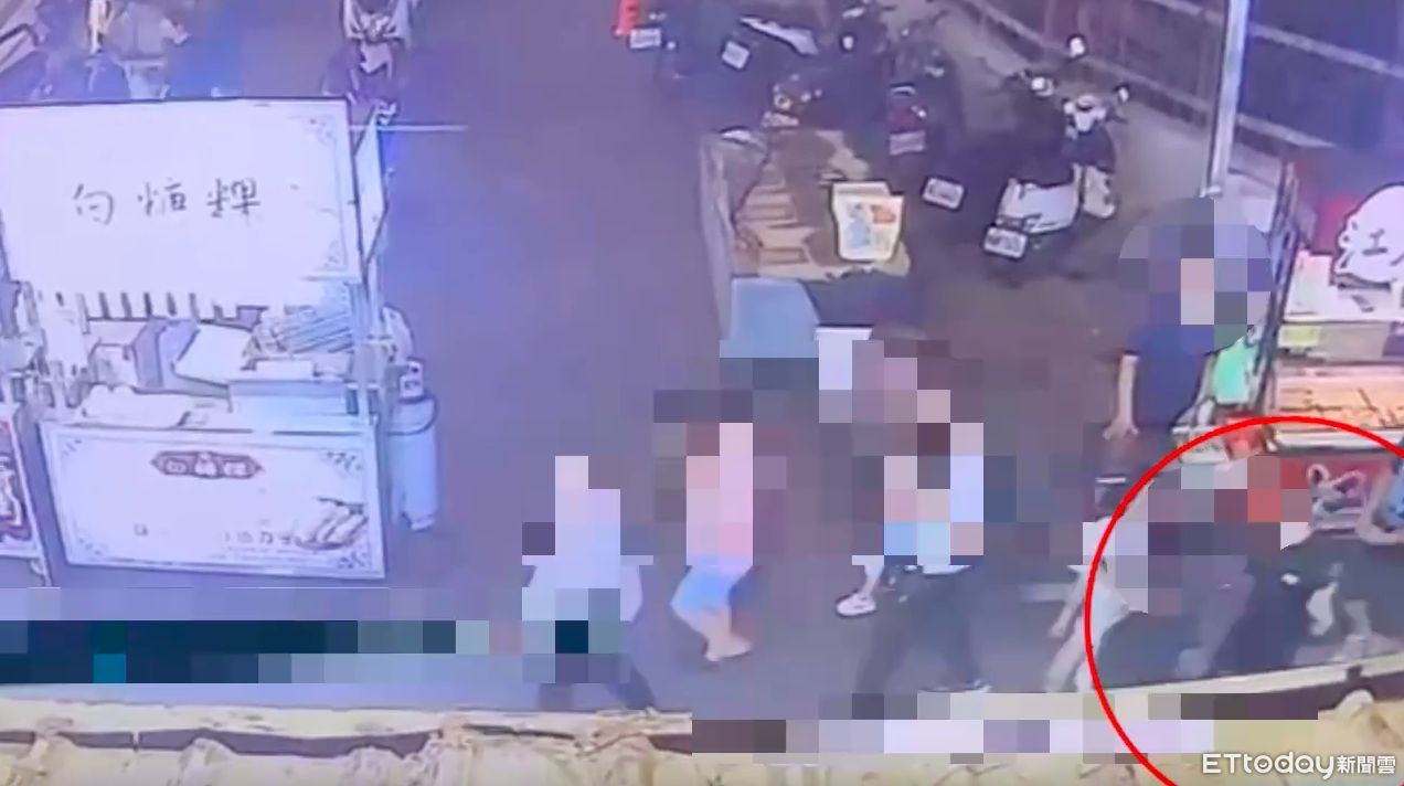 ▼徐男(紅箭頭)與李男發生拉扯,李男女友(左一)喊「不要打我男朋友」 。(圖/記者陳以昇翻攝)