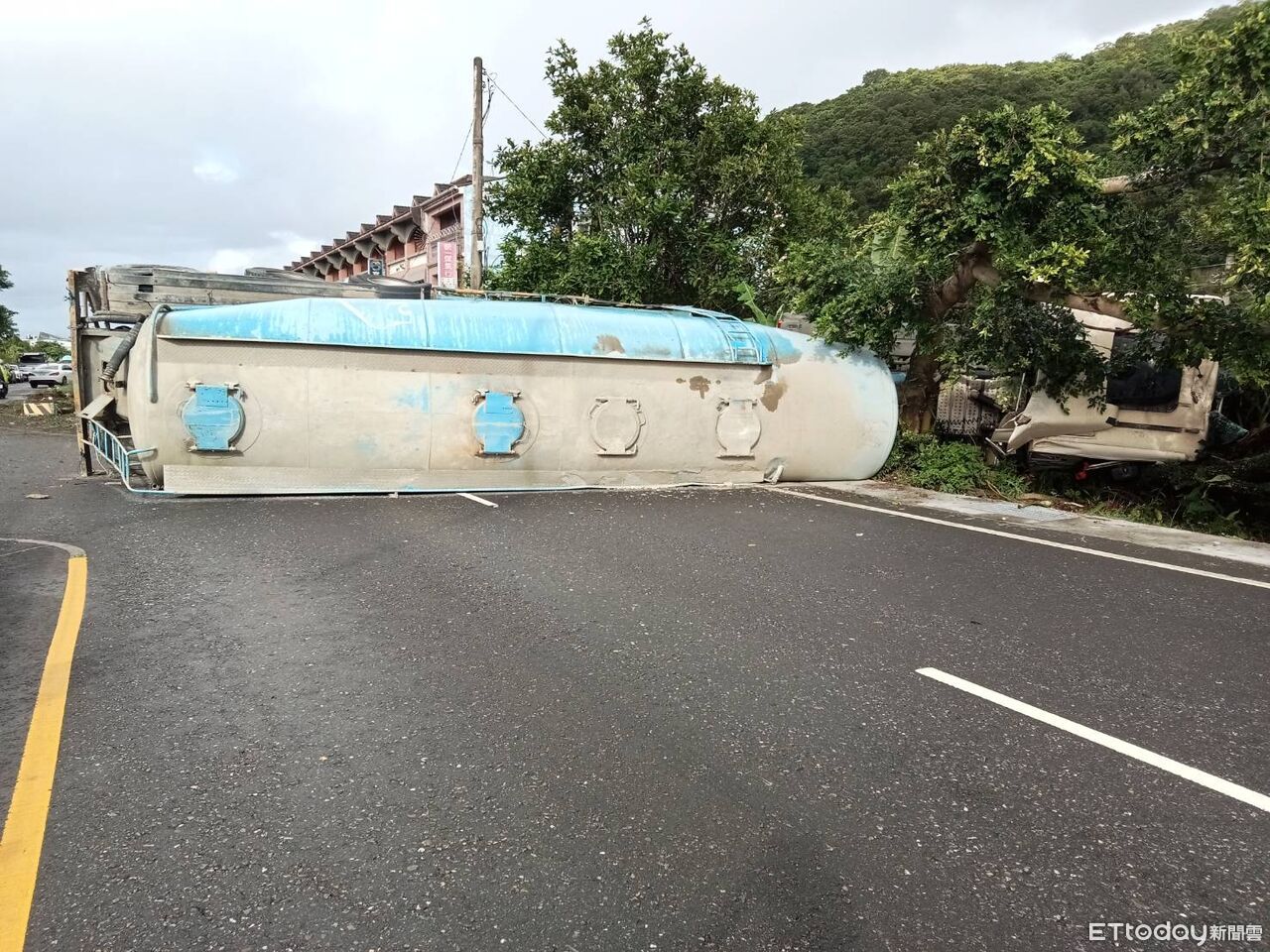 ▲▼頭城鎮濱海路一段水泥車側翻。(圖/記者游芳男翻攝,下同)