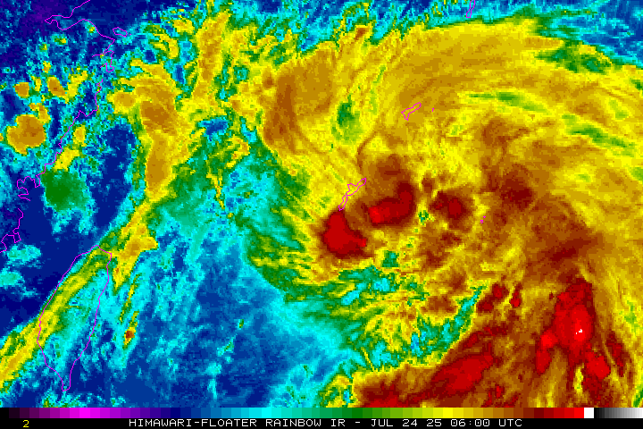 隨著颱風通過台灣北方,環境風場由偏北風轉為偏西風至西南風,中南部地區及澎湖、金門、馬祖雨勢將越晚越明顯,並有局部大雨發生的機率。花東以多雲為主,午後有短暫陣雨;馬祖明天(25日)下半天至26日離颱風或TD比較近,也會有較大雨勢,澎湖、金門也有短暫陣雨。