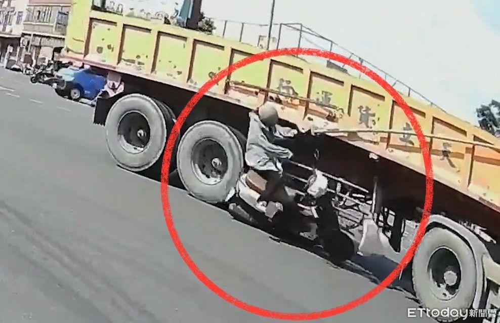 高雄市鳥松區昨日(24日)上午發生一起怵目驚心的車禍事故,一部直行的機車在神農路與中正路口,遭到一部正在右轉的曳引車撞上,機車騎士潘女當場騰空向後翻轉摔落,所幸並未被曳引車輾壓,僅受輕微擦挫傷,機車則被捲入輪下一路拖行。這驚險的一幕被民眾拍下並上傳網路,引發討論。