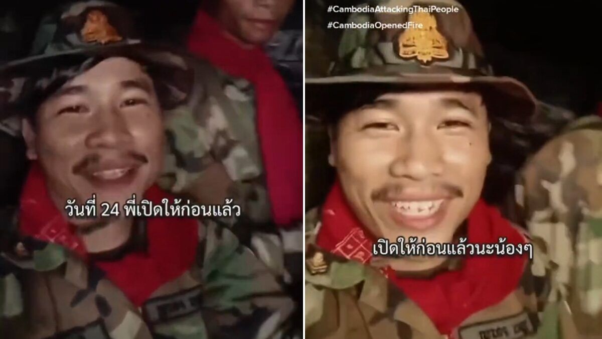 泰國TikTok帳號@journey_of_the_past_new在26日上傳了一段引起熱議的影片,內容是一名身穿柬埔寨軍服的士兵躲在戰壕中,臉帶微笑地用高棉語對著鏡頭自拍影片。這段影片被一名聽得懂高棉語的網友發現後,隨即逐字翻譯,而相關內容也讓泰國網友大為震驚。