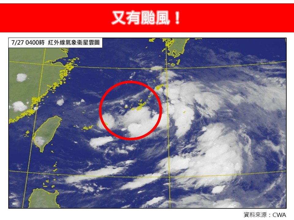 林得恩在「林老師氣象站」臉書提到,本周台灣適位於大低壓帶內,根據今晨美國NCEP最新數值模擬結果顯示,在台灣東北方外海有一新的熱帶擾動91W即將生成(原竹節草颱風殘餘水氣與附近環流重新整合),且後續再增強為颱風的機會正在增大。