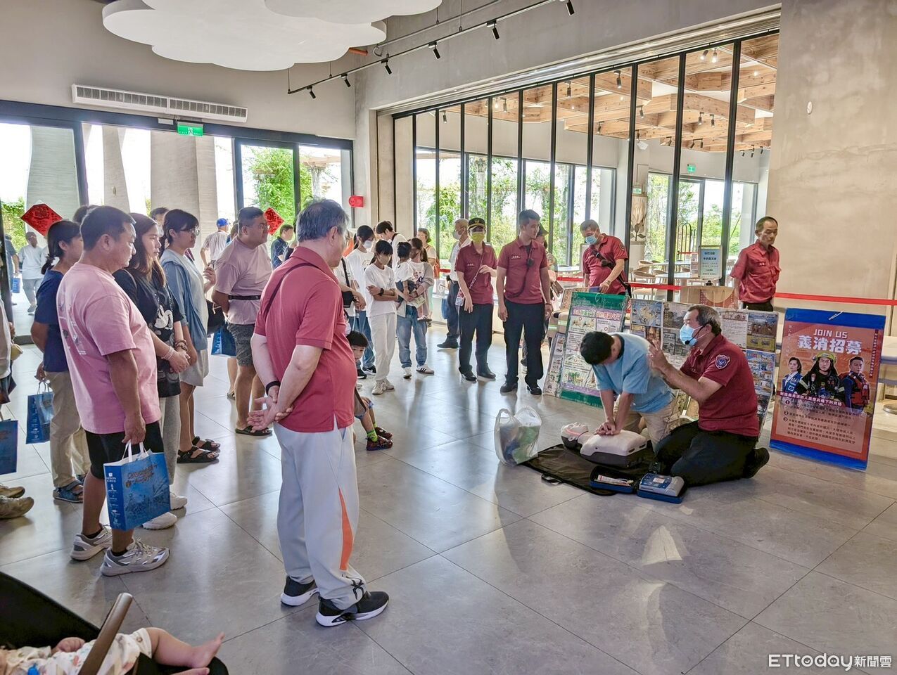 ▲台南後壁消防分隊進駐雅聞觀光工廠,現場展示CPR與AED操作,吸引遊客圍觀學習。(圖/記者林東良翻攝,下同)