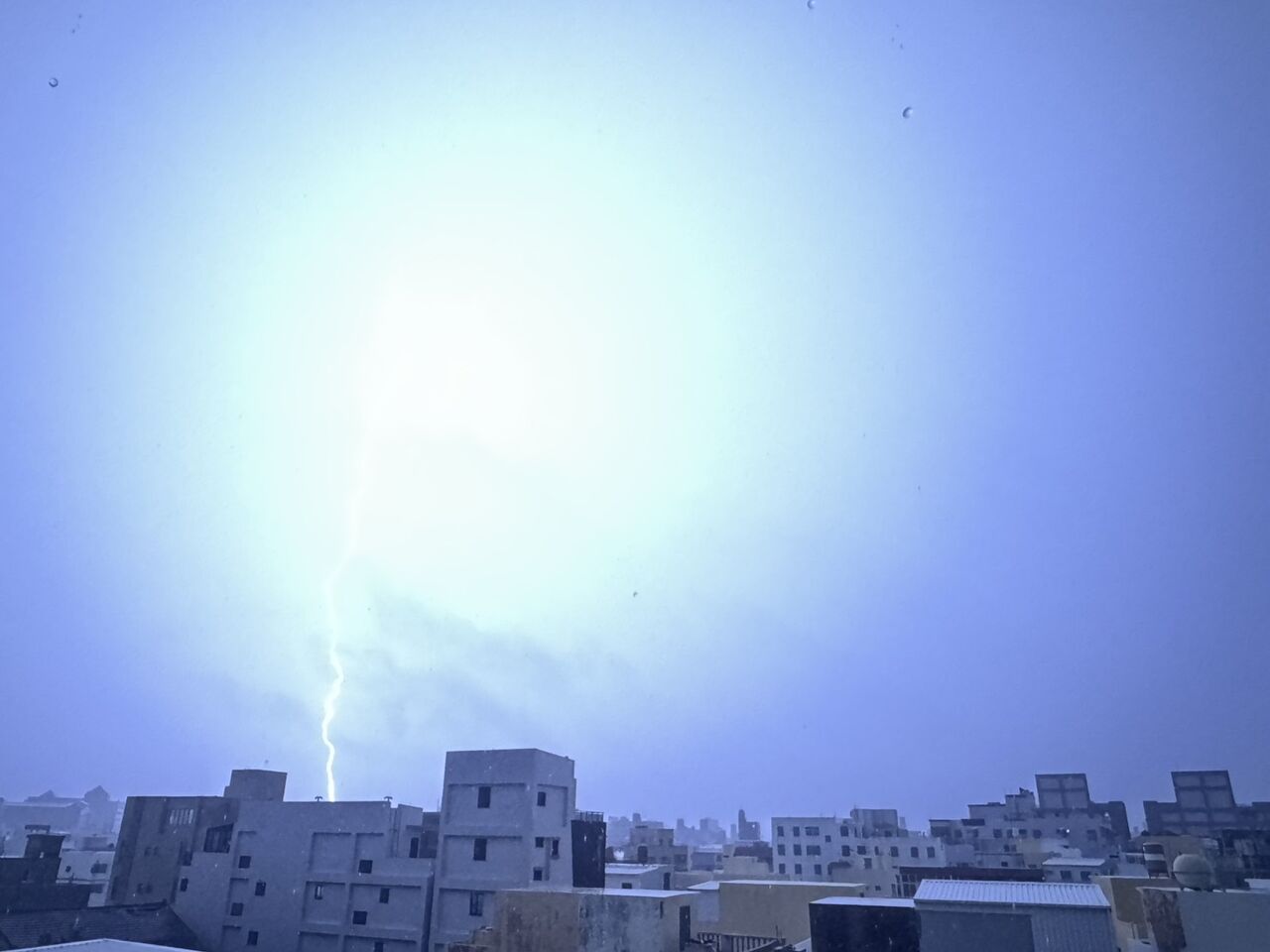 ▲澎湖雷雨交加,閃電直擊地面,十分驚人。(圖/民眾提供)