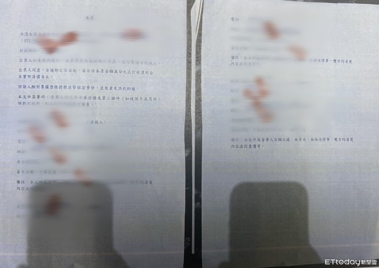 ▲警方酒店擴大臨檢男子突然求救,只稱被設局逼簽350萬本票(下圖)甚至遭呼巴掌。(圖/記者邱中岳翻攝)