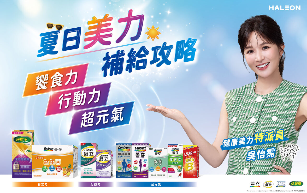 全球消費保健龍頭赫力昂(Haleon),旗下擁有善存、挺立、保麗淨等多款保健領導品牌,貼近每個家庭的日常健康照護需求。隨著夏日腳步來臨,美力與健康,是度過完美夏日的關鍵!Haleon特別邀請健康美力特派員吳怡霈,結合自身的夏季保養經驗,為大家量身打造「夏日美力補給攻略」,攜手全聯、康是美、藥局等通路推出夏日健康好物,讓你從容迎接夏日每一次出發。