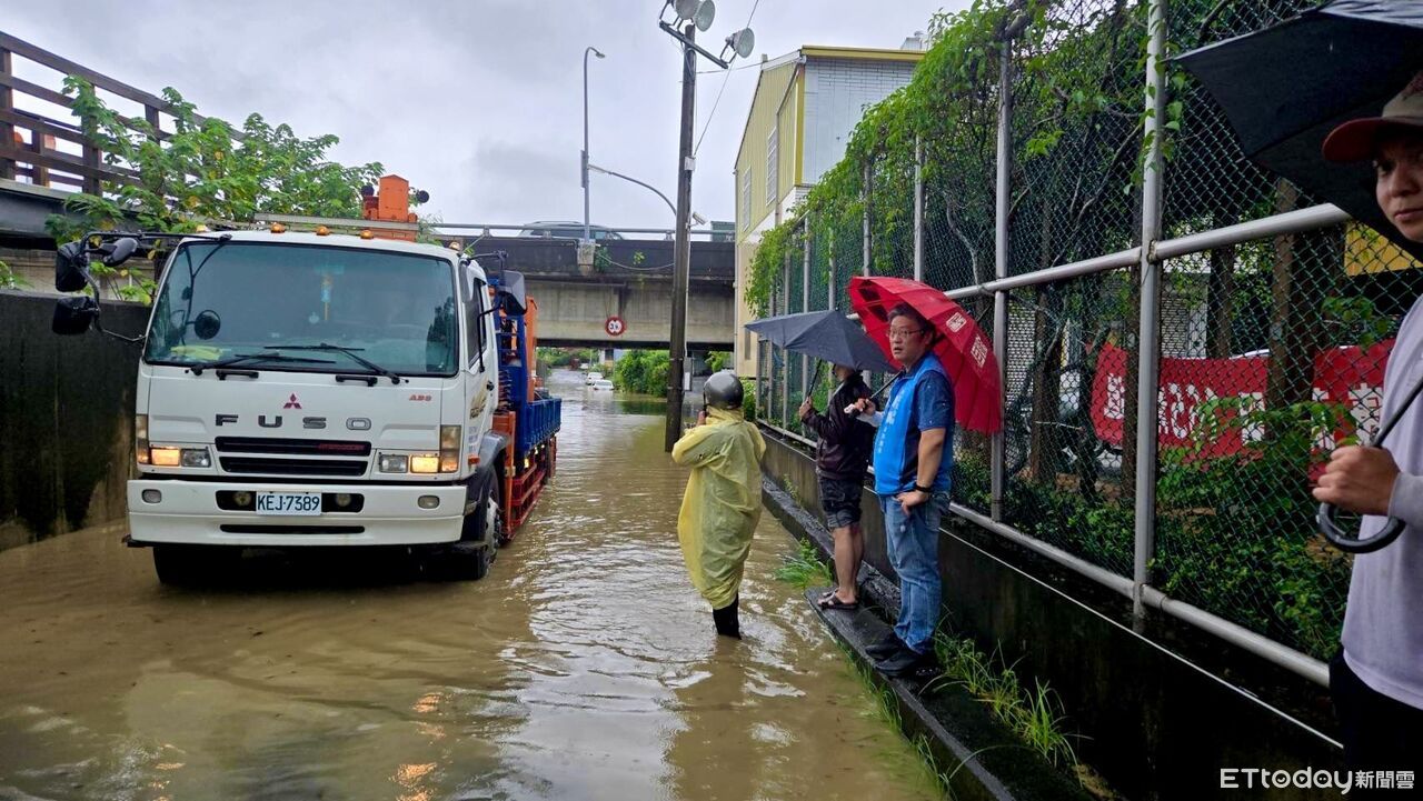 ▲南投市內外轆淹水成災,立委游顥會同水利署勘災。(圖/立委游顥辦公室提供,下同)