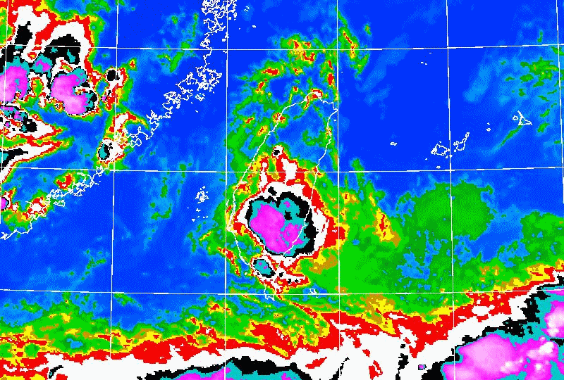 ▲西南氣流紫一大片,今晚一波降雨高峰報到。(圖/中央氣象署)