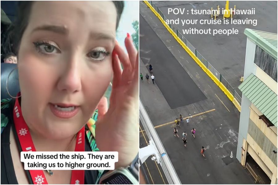大浪來襲時,停靠夏威夷港口的多艘郵輪必須駛往深水區避險,但部分上岸觀光的遊客來不及返船。TikTok用戶@demifreeman拍攝的影片可見一群遊客在碼頭上狂奔,試圖趕上即將啟航的郵輪,配文寫道,「夏威夷發生海嘯,而你的郵輪拋下乘客離開,真是瘋了。」