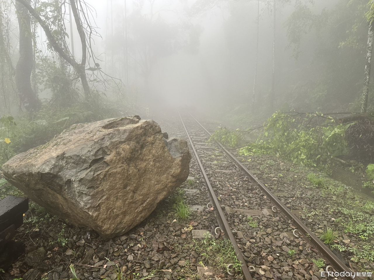 ▲ 阿里山林鐵因西南風帶來豪雨 仍有多處崩落土石待清理,本線(嘉義-阿里山)持續停駛 ,圖為獨立山段 28k740 倒樹。(圖/林鐵及文資處提供)