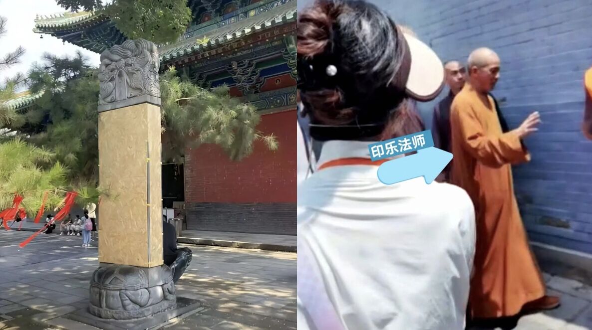 ▲釋永信紀念碑被遮蓋。(圖/翻攝第一財經)