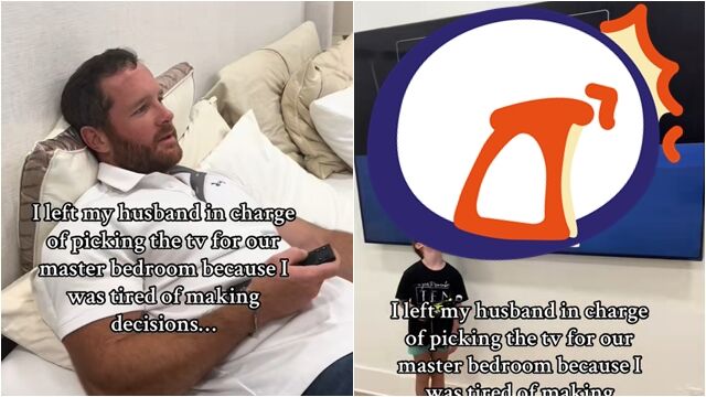 美國德州一對夫妻正在翻修住家,老婆因為懶得再做決定,於是交由丈夫全權負責採購主臥室電視,未料對方竟然把一台98吋巨無霸電視搬回家,讓她既震驚又哭笑不得。