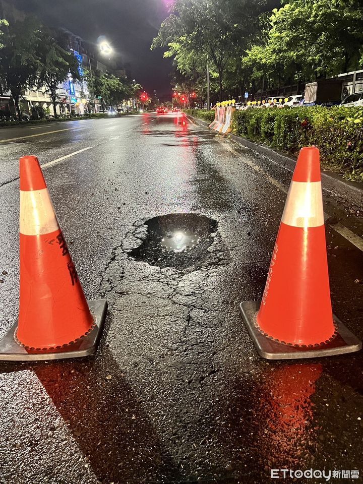 受到連日降雨影響,在楠梓區德民路的內車道,竟然出現一處1.2x0.6公尺的路面坑洞,造成行經車輛車輪破損,所沒有造成人員受傷。