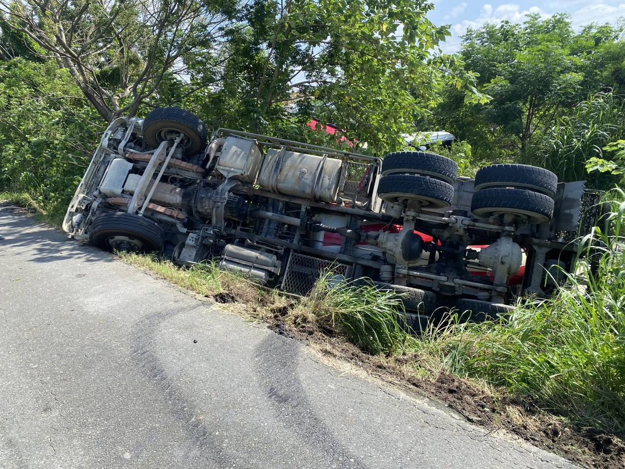 ▲彰化芬園鄉混凝土車翻覆駕駛受傷送醫。(圖/警方提供,以下同)