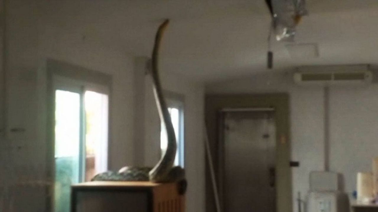 綜合泰媒報導,事發地點位於暖武里府一棟兩層樓住宅,當時正進行整修。32歲的女屋主表示,早上約7點,家中的女傭照顧貓咪時,驚見巨蟒盤踞在儲物櫃上方,嚇得立刻報警求助。