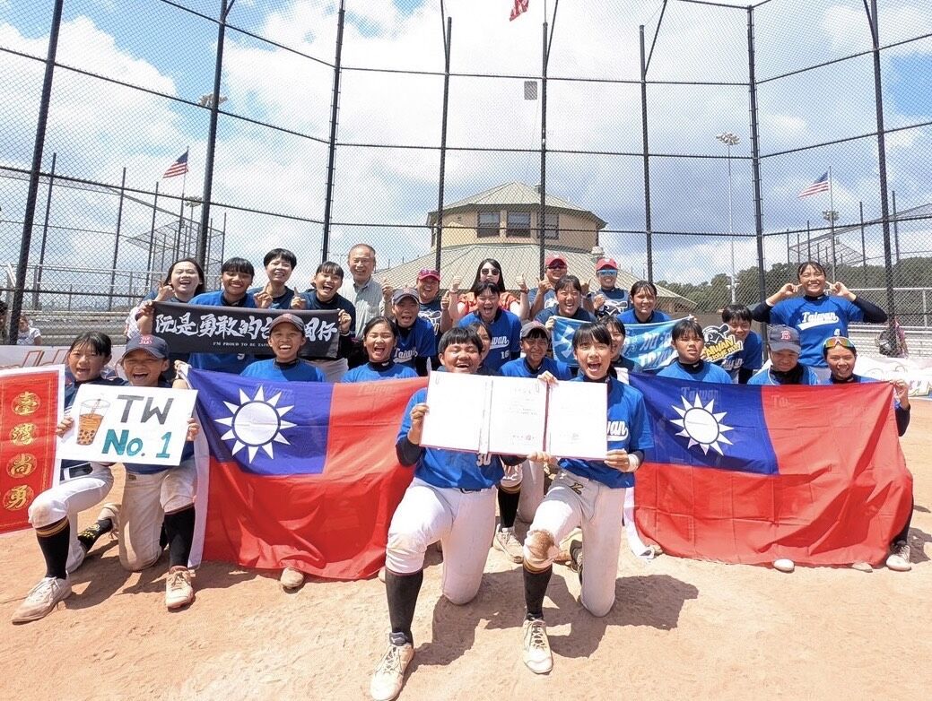 ▲北投國中女壘隊以12比1擊敗勁敵波多黎各隊拿下冠軍。(圖/翻攝自Facebook/黃捷,下同)