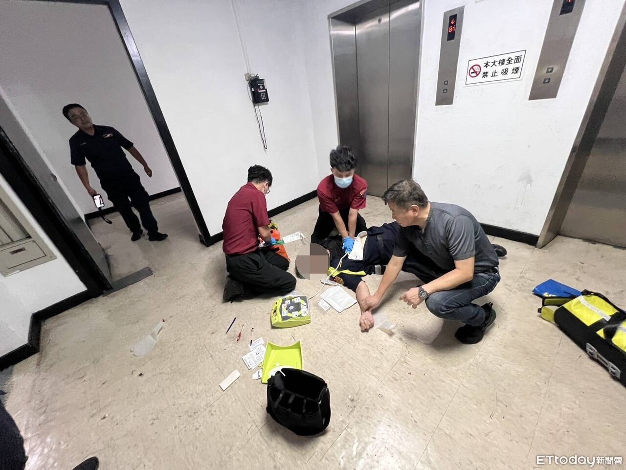 其他同事見狀立刻上前協助,拿出電擊急救器兩度搶救,直到恢復心跳後通知救護人員,並且將人送往內湖三總進行治療。